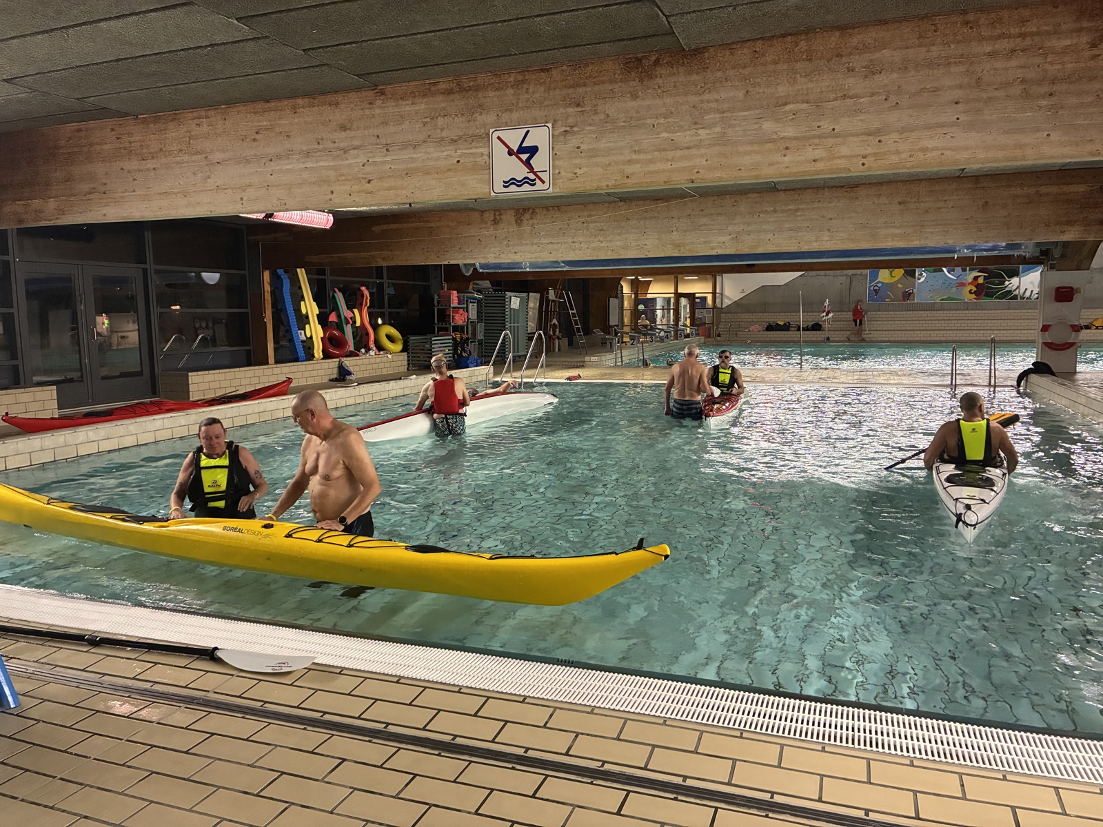 10 kajakker 15 kajakroere i gang helt uden problemer og så har vi endda kun plads i spring- og børnebassinerne, men det gik fremragende – lidt trafik til tider men ingen problemer.