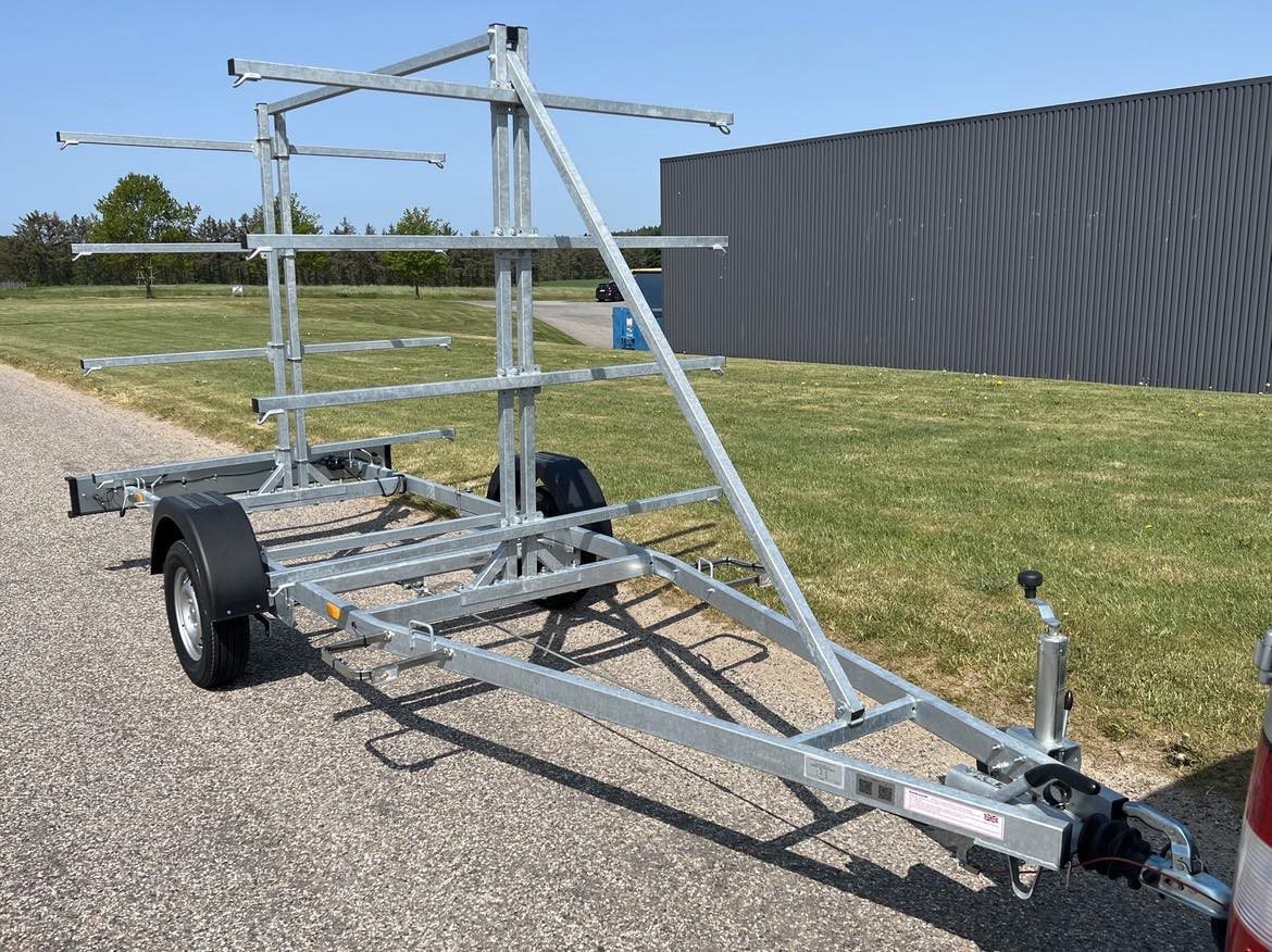 Vi har i dag indkøbt en helt ny, almindelig åben kajaktrailer med plads til 8-16 kajakker, den vil få et nedbygget rum midt i traileren til pagajer, udstyr og bukke.